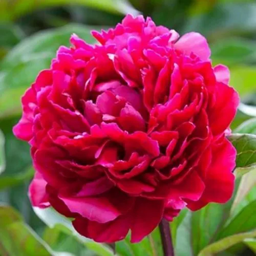 Цветы это истинные жемчужины вашего сада. Крупные, диаметром до 17 см, махровые полушаровидные цветки поражают своей насыщенностью тёмного малиново-красного тона. Их форма несимметричная и рыхлая, лепестки волнистые, создающие эффектную игривость и элегантность. Аромат – нежный и тонкий, приятное дополнение к его ошеломляющему внешнему виду.