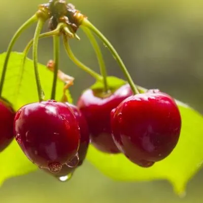- Шаровидной формы, одного размера, тёмно-красного цвета, покрыты малым количеством слабозаметных подкожных точек. Кожица умеренно грубая, ровная. Мякоть плотная и сочная, по структуре – хрящеватая, тёмно-красного, а сок – красного цвета. Косточка небольшая, круглой формы, легко извлекается;