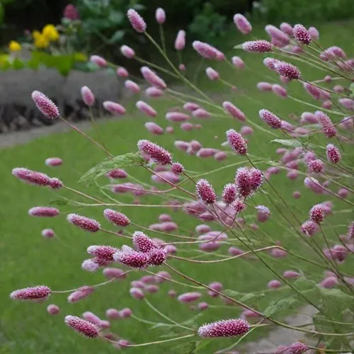 Цветение начинается в середине лета и продолжается до осени — до 8 недель непрерывного цветения. Цветки мелкие, собраны в продолговатые цилиндрические головки длиной около 6 см. Окрас — глубокий пурпурно-бордовый, подчёркивающий графичность и строгость формы. Соцветия расположены на прочных, тонких цветоносах, которые легко качаются на ветру, создавая живую динамику.