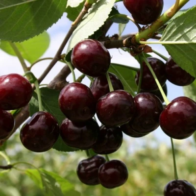 - Широко-округлой формы, блестящего тёмно-вишнёвого цвета. Отличаются своим крайне привлекательным внешним видом. Кожица сухого отрыва, не растрескивается. Мякоть средне плотная и сочная, тёмно-красного, а сок – красного цвета. Косточка округло-яйцевидной формы, коричневого цвета, легко извлекается;